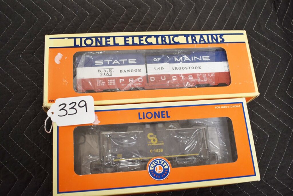 339.        Pair of Lionel Train Cars – Including C&O Caboose 6-36622 and State of Maine Boxcar Bangor and Aroostook Box...
