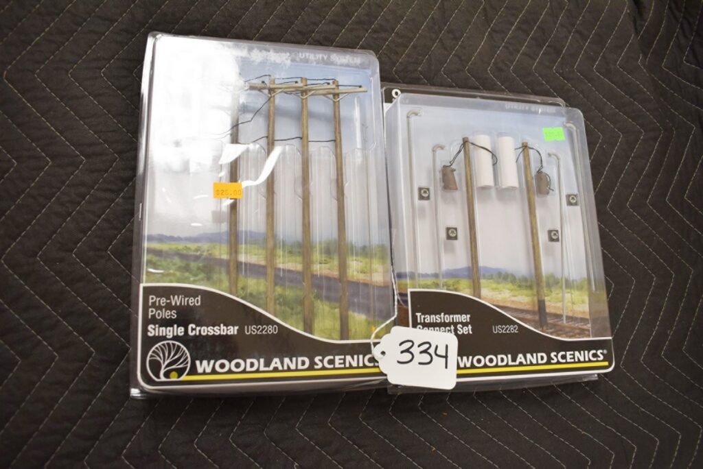334.        Woodland Scenics Transformer Connect Set US2282 & Woodland Scenics Pre-Wired Poles Single Crossbar US2280 – Both in Packaging
