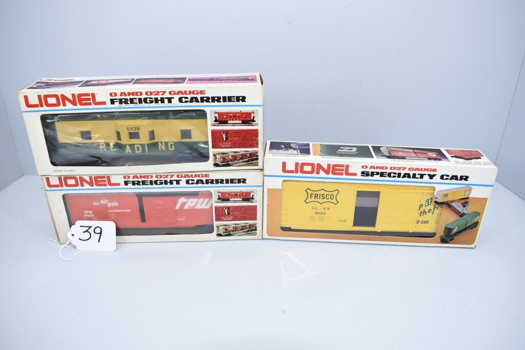 39.          Lot of 3 Lionel O-Gauge Box Cars