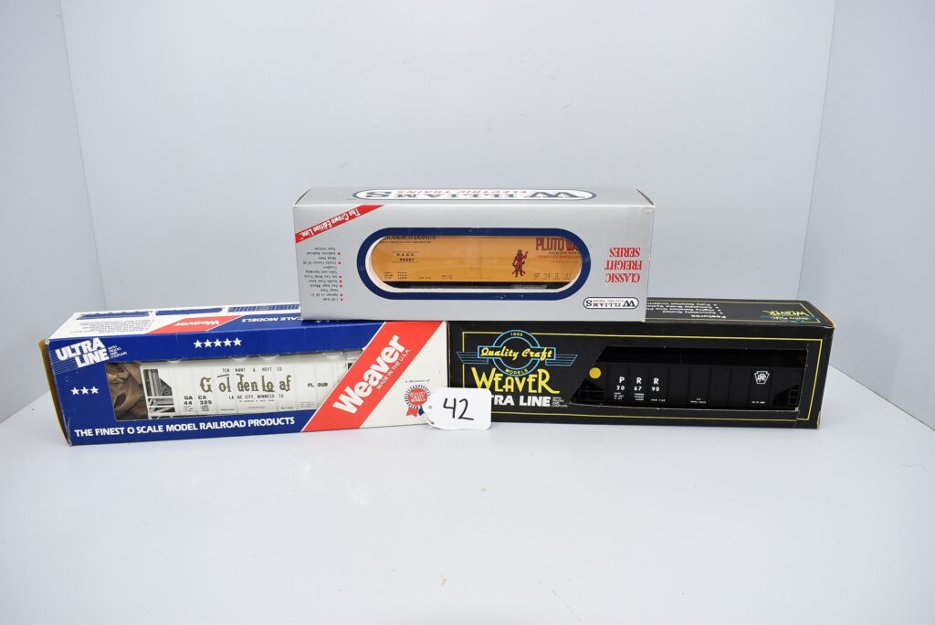 42.          Lot of 3 O-Gauge Train Cars – Including Williams Classic Freight Car No. 69 Refrigerator Car No. 3269, Weaver...