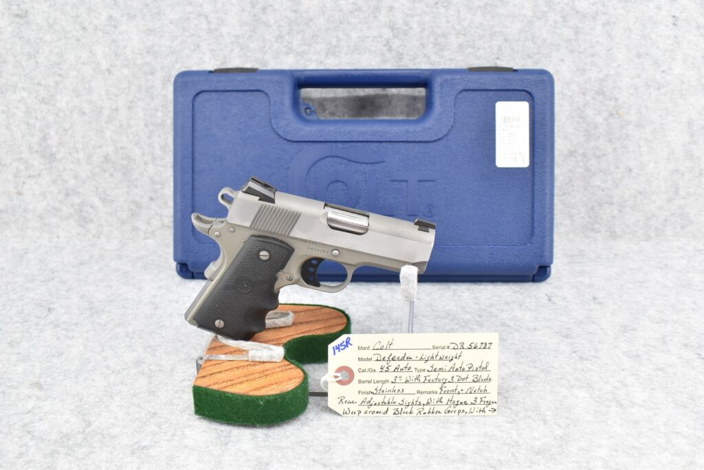 145R. Colt – Mod. Defender Lightweight – 45 Auto Cal. Semi-Auto Pistol – w/3” Barrel w/Factory 3-Dot Blade Front &...