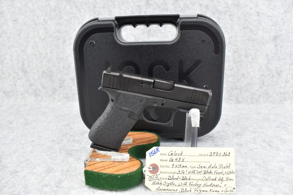 156R. Glock – Mod. G43X – 9x19mm Cal. Semi-Auto Pistol – w/3 ¼” Barrel w/Dot Blade Front & White Outlined...