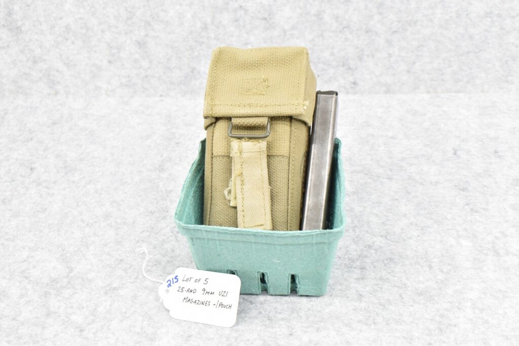 215. Lot of Five 25Rd 9mm UZI Magazines – w/Pouch