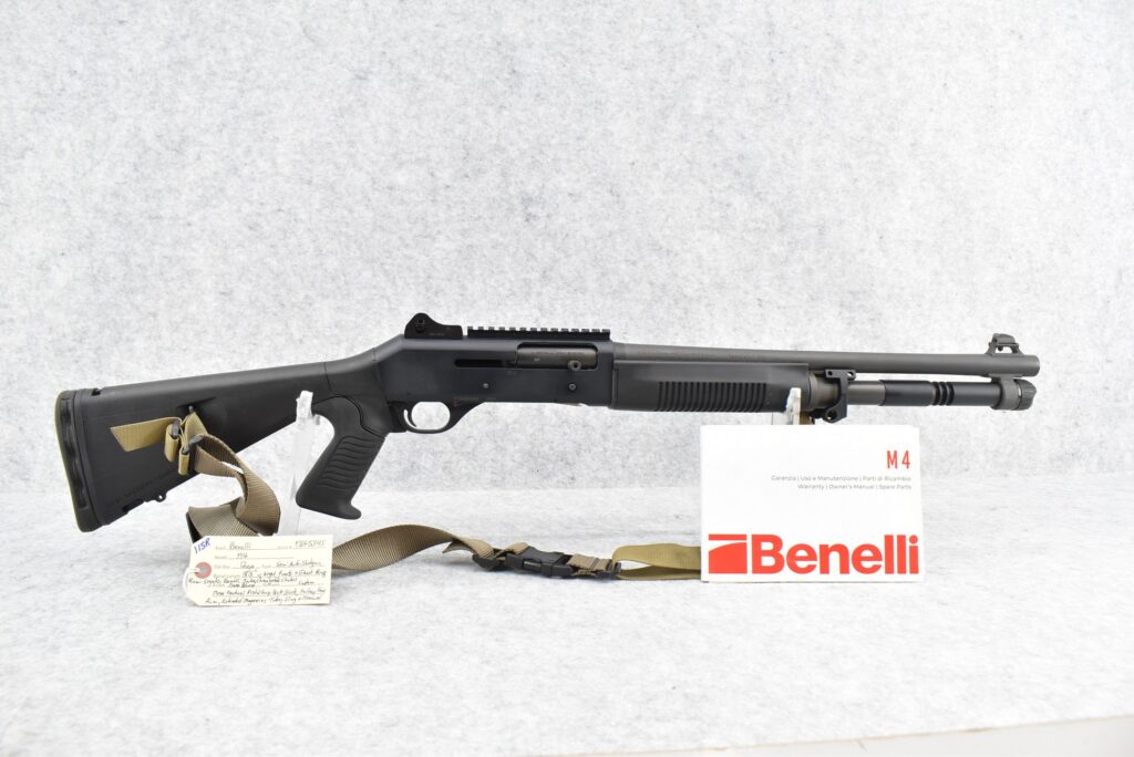 115R. Benelli – Mod. M4 – 12ga. Semi-Auto Shotgun – w/18.5” Barrel w/Night Front & Ghost Ring Rear Sights w/Benelli...