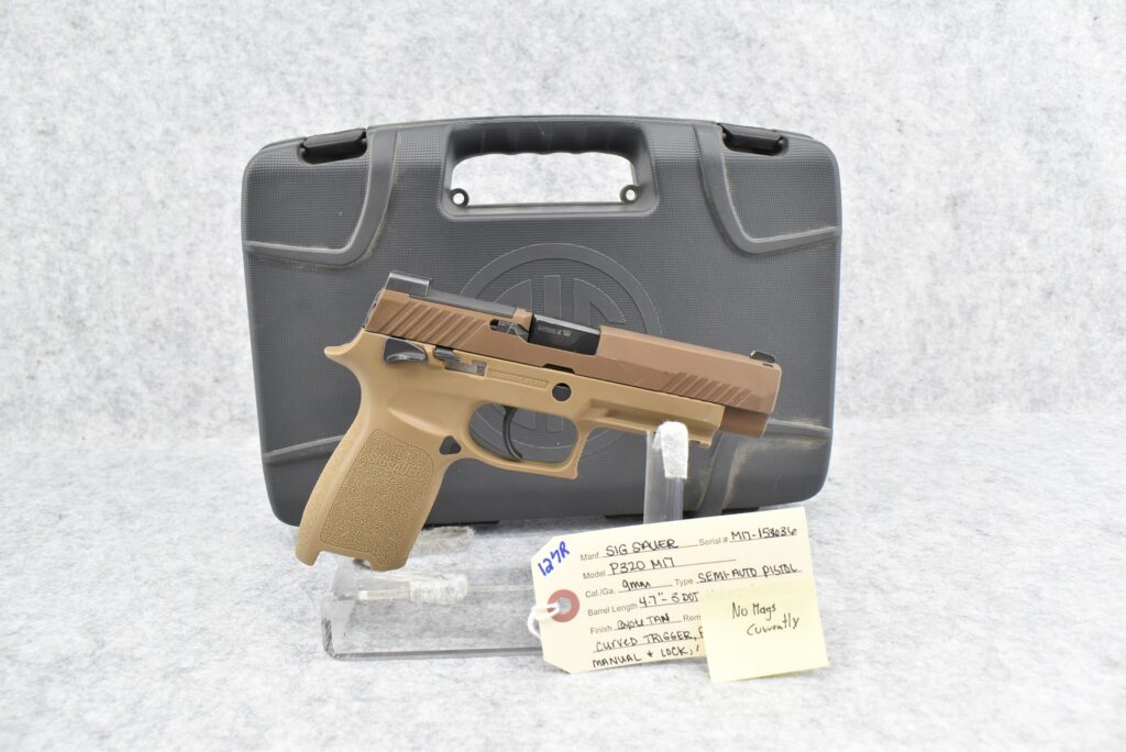 127R. Sig Sauer – Mod. P320 (M17) – 9mm Cal. Semi-Auto Pistol – w/4.7” Barrel w/3-Dot Night Sights – Coyote...