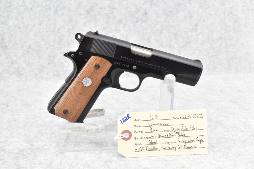 122R. Colt – Mod. Commander – 9mm Cal. Semi-Auto Pistol – w/4” Barrel w/Front & Rear Fixed Sights – Blued...