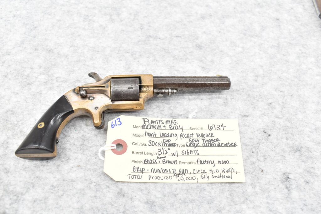 613.        Plant’s Mfg. Merwin & Bray – Mod. Front Loading Pocket Revolver – 30 Cal. Cup Primed Spur Trigger Single...