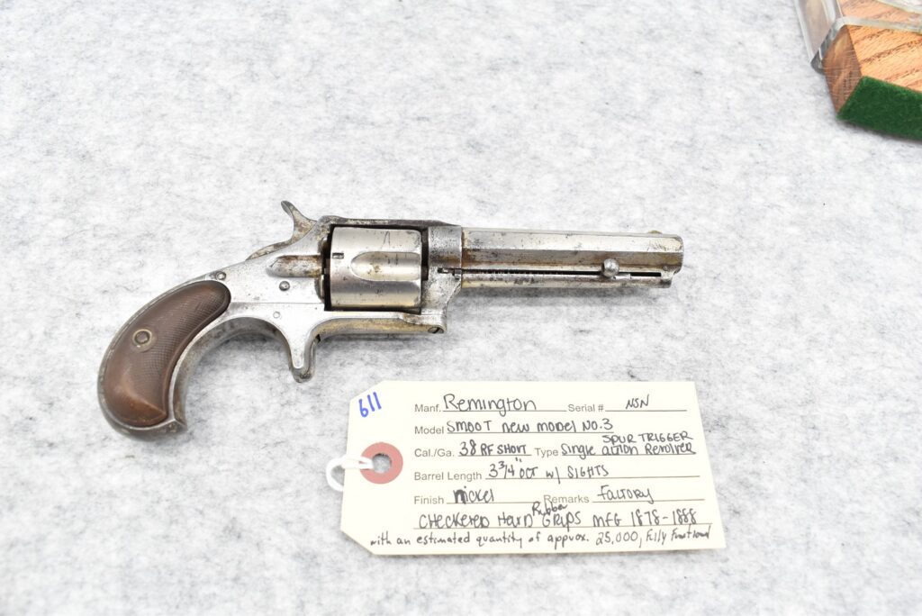 611.        Remington – Mod. Smoot New Model No. 3 – 38 RF Short Cal. Spur Trigger Single Action Revolver