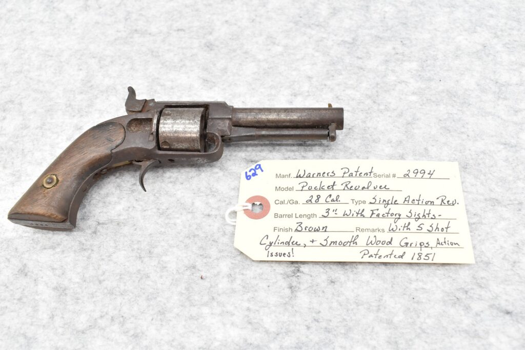 629.        Warners Patent – Mod. Pocket Revolver – 28 Cal. Single Action Revolver
