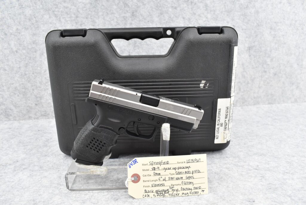 643R.     Springfield – Mod. XD-9 Gear-Up Package – 9mm Cal. Semi-Auto Pistol – w/4” Barrel w/3-Dot White Sights – Stainless...
