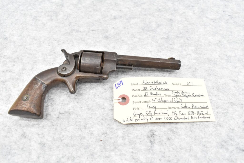 637.        Allen & Wheelock – Mod. 32 Side Hammer – 32 Rim Fire Cal. Spur Trigger Single Action Revolver –...