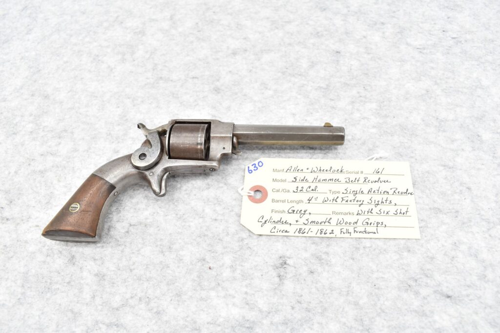 630.        Allen & Wheelock – Mod. Side Hammer Belt Revolver – 32 Cal. Single Action Revolver – w/4” Barrel w/Factory...