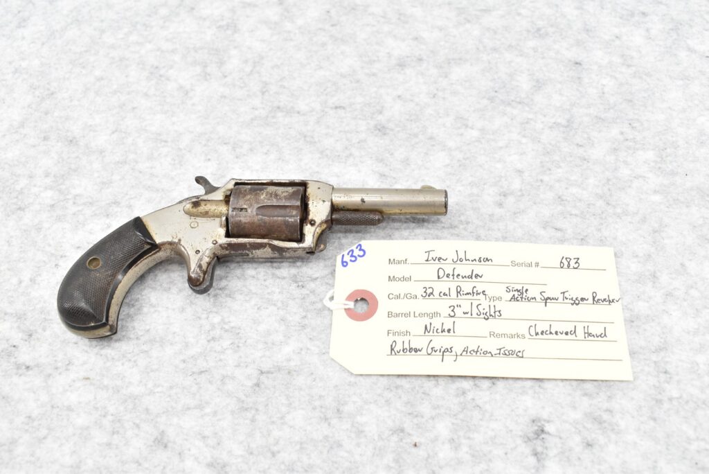 633.        Iver Johnson – Mod. Defender – 32 Rim Fire Cal. Spur Trigger Single Action Revolver – w/3” Barrel w/Sights...