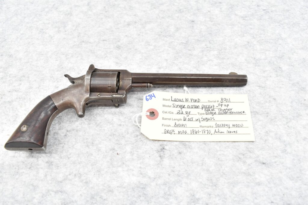 634.        Lucius W. Pond – Mod. Single Action Pocket Tip-Up – 32 Rim Fire Cal. Spur Trigger Single Action Revolver...