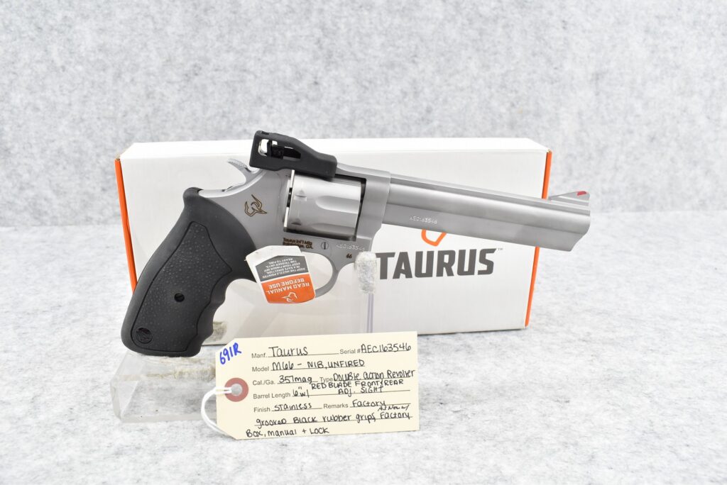 691R.     Taurus – Mod. M66 – 357 Mag. Cal. Double Action Revolver – w/6” Barrel w/Red Blade Front & Rear...