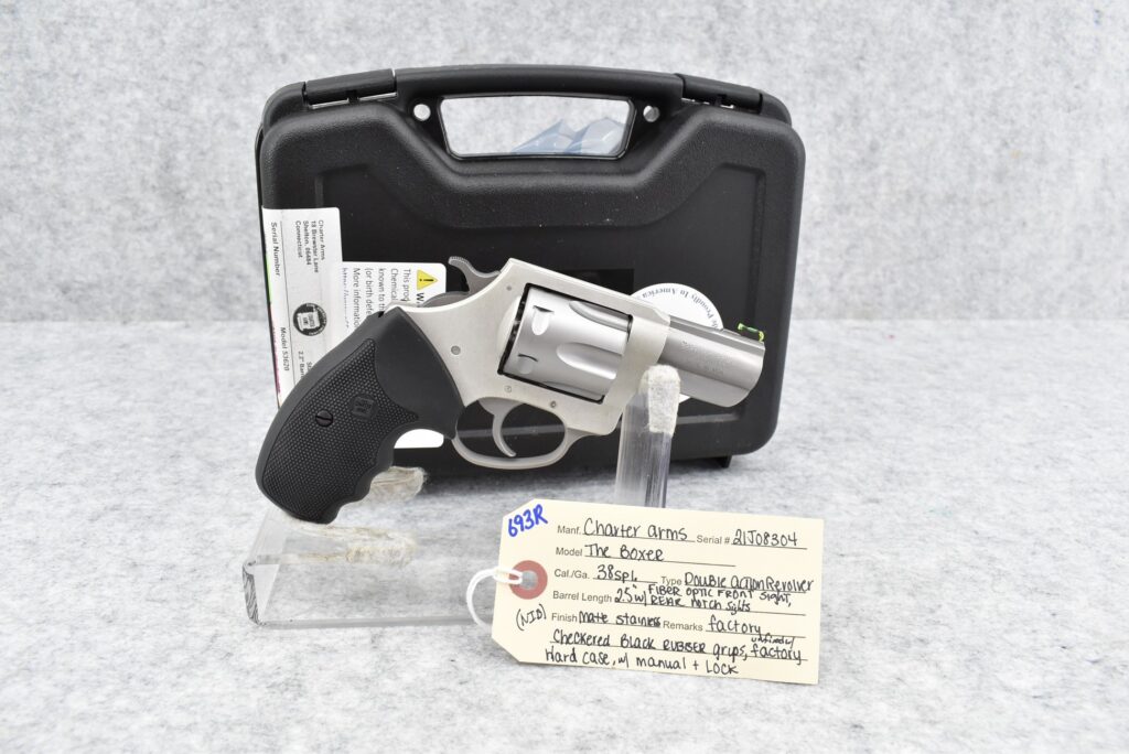 693R.     Charter Arms – Mod. The Boxer – 38 Spl. Cal. Double Action Revolver – w/2.5” Barrel w/Fiber Optic Front...