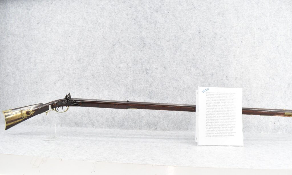 160.        Unsigned 32 Cal. Full Stock Long Rifle Attributed to Jonathan Dunmeyer of Somerset County, PA – Gun Has a 32 Cal. 39” Octagon Barrel