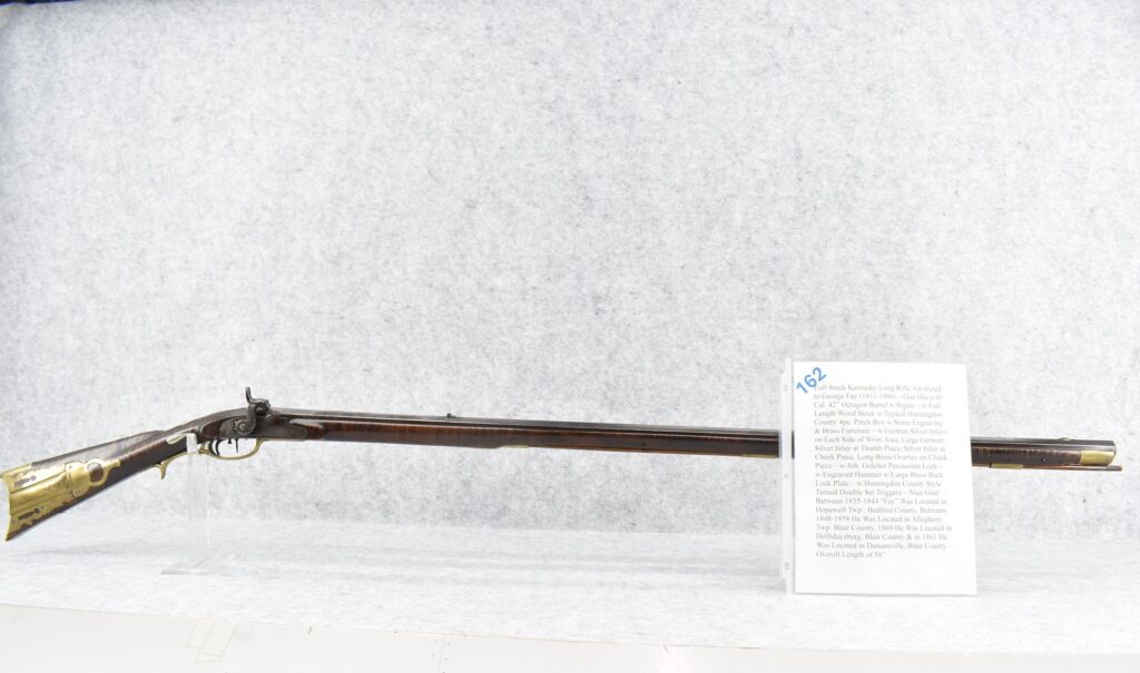 162.        Full Stock Kentucky Long Rifle Attributed to George Fay (1811-1900) – Gun Has a 40 Cal. 42” Octagon Barrel