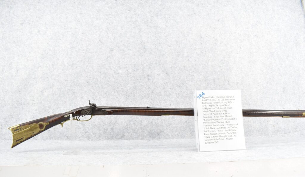 164.        Signed J Mier (Jacob) of Somerset PA (1793-1873) 50 Cal. Percussion Full Stock Kentucky Long Rifle – w/40” Signed...
