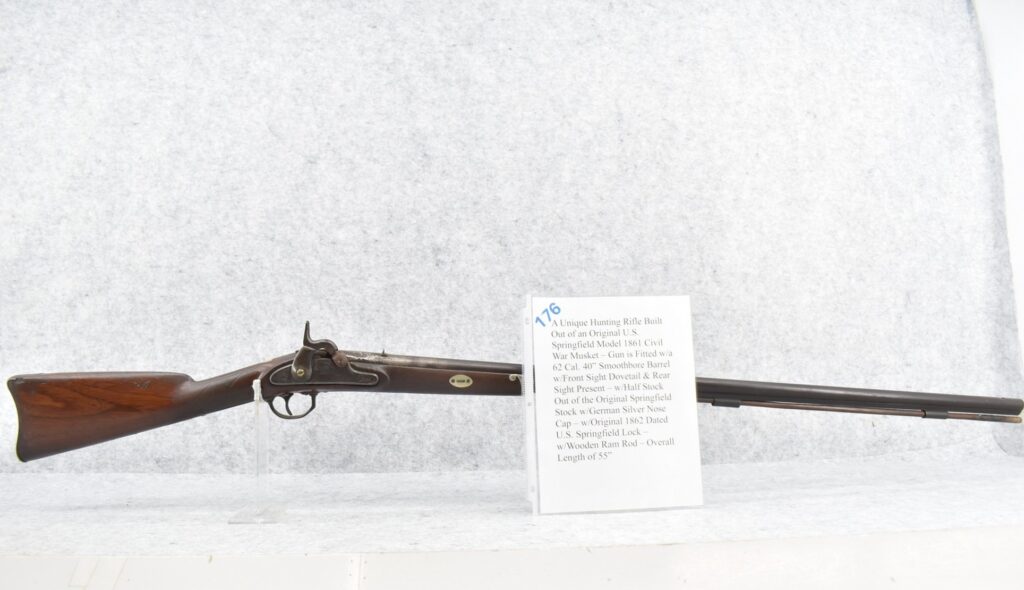 176.        A Unique Hunting Rifle Built Out of an Original U.S. Springfield Model 1861 Civil War Musket – Gun is Fitted w/a 62 Cal. 40” Smoothbore Barrel