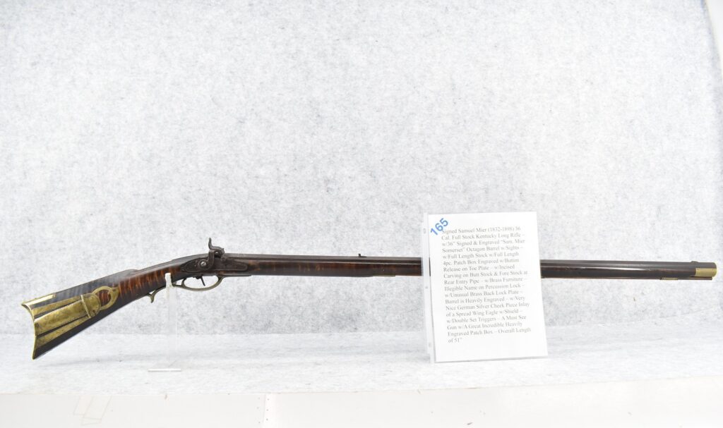 165.        Signed Samuel Mier (1832-1898) 36 Cal. Full Stock Kentucky Long Rifle – w/36” Signed & Engraved “Sam. Mier Somerset”...