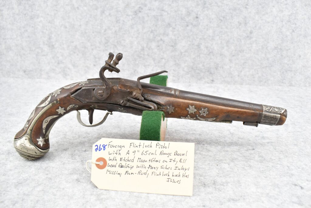 268.        Foreign Flintlock Pistol – w/65 Cal. Range 9” Barrel