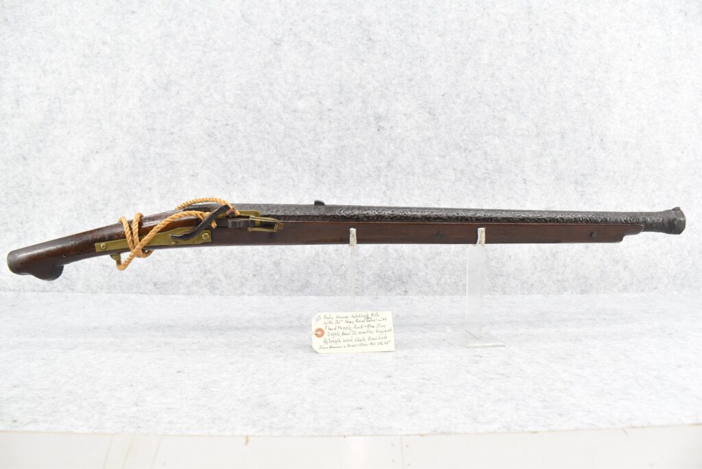 105.        Early Chinese Matchlock Rifle – w/30” Heavy Round Iron Barrel w/Flared Muzzle w/Front & Rear Iron Sights – Barrel...