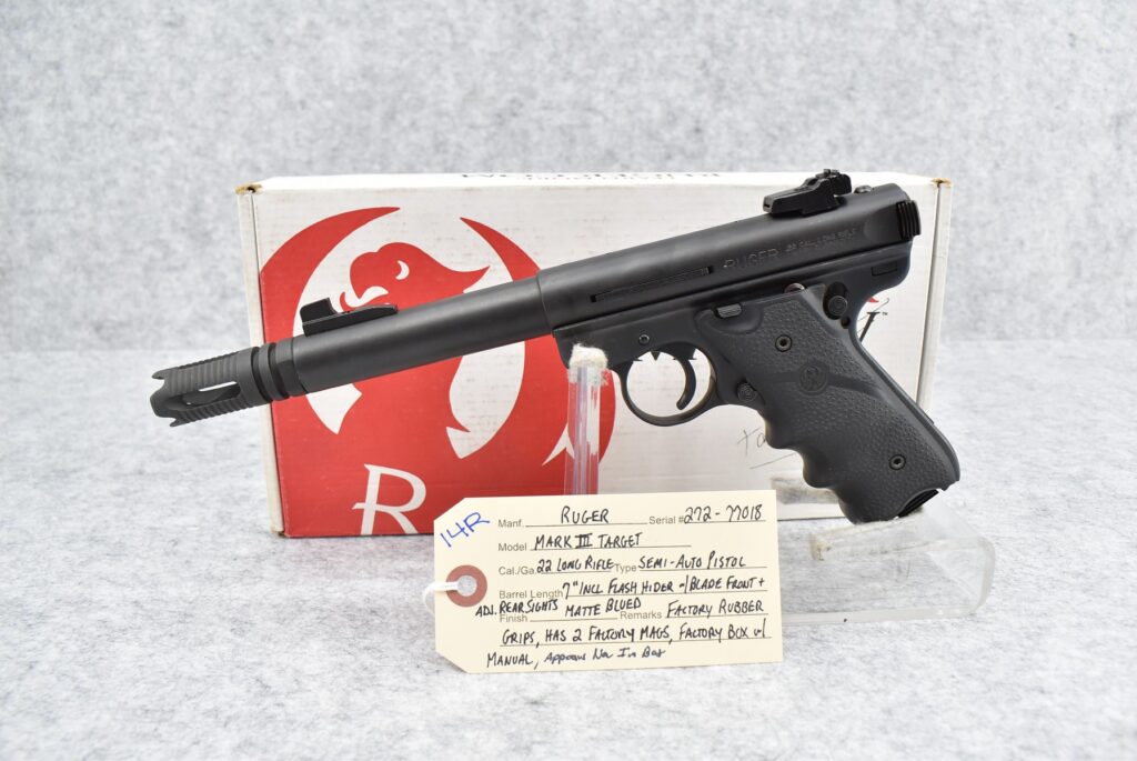 14R. Ruger – Mod. Mark III Target – 22LR Cal. Semi-Auto Pistol – w/7” Barrel Including Flash Hider w/Blade Front...