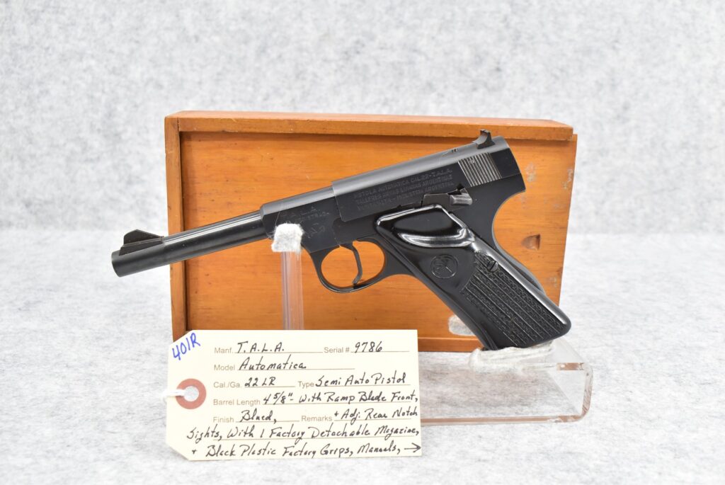 401R.     T.A.L.A. – Mod. Automatica – 22LR Cal. Semi-Auto Pistol – w/4 5/8” Barrel w/Ramp Blade Front and Adjustable Rear...