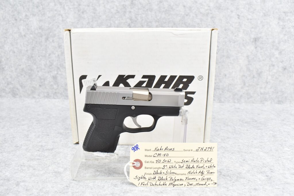 90R. Kahr Arms – Mod. CM-40 – 40 S&W Cal. Semi-Auto Pistol – w/3” Barrel w/White Dot Blade Front &...