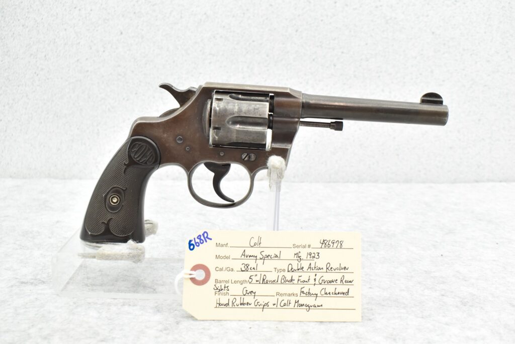 668R.     Colt – Mod. Army Special – 38 Cal. Double Action Revolver – w/5” Barrel w/Round Blade Front & Groove...