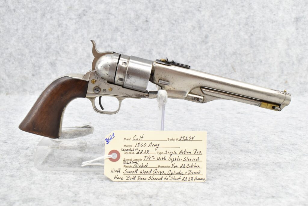 362R. Colt – Mod. 1860 Army – Converted to 22LR Cal. Single Action Revolver – w/7 ¼” Sleeved Barrel w/Sights...