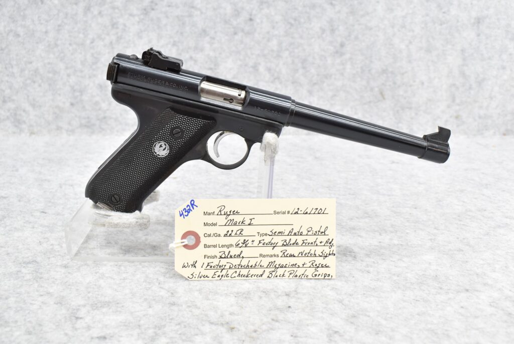 432R. Ruger – Mark I – 22LR Cal. Semi-Auto Pistol – w/6¾” Tapered Heavy Barrel w/Factory Blade Front and Adjustable...