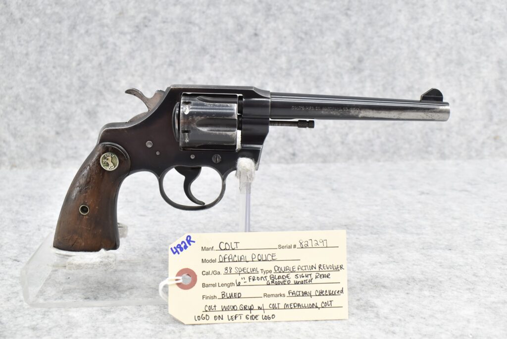 482R. Colt – Mod. Official Police – 38 Spl. Cal. Double Action Revolver – w/6” Barrel w/Front Blade & Rear...