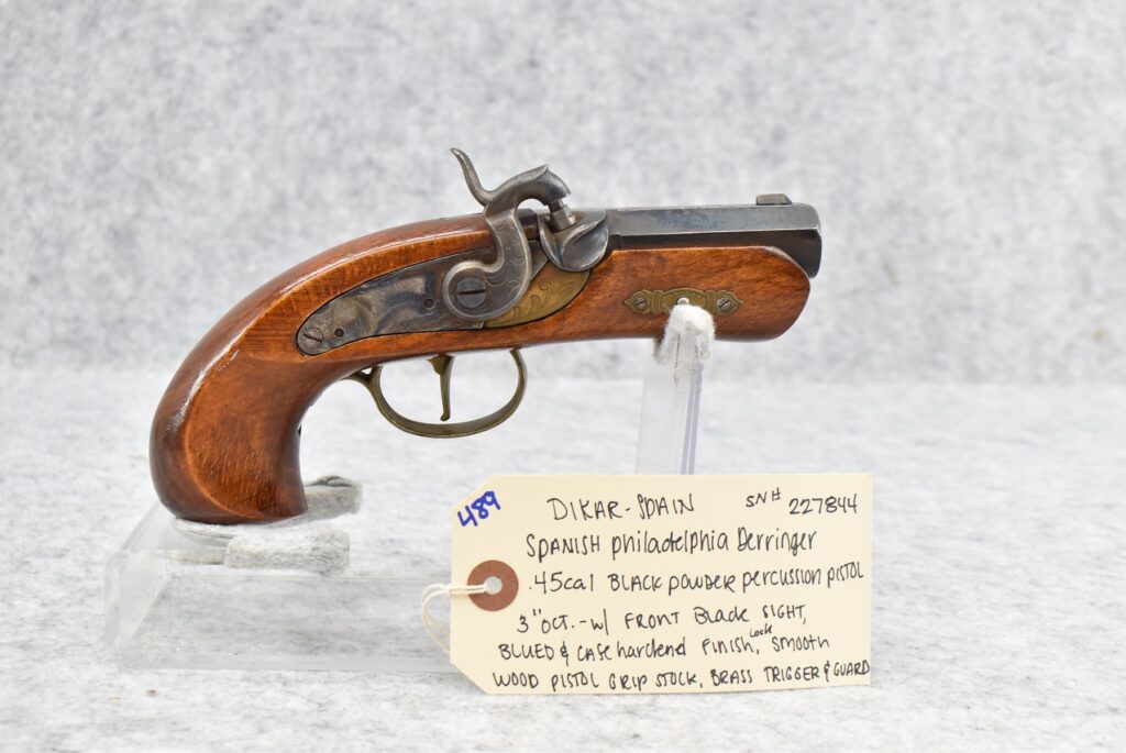 489. Dikar (Spain) – Spanish Philadelphia Derringer – 45 Cal. Percussion Black Powder Pistol – w/3” Octagon Barrel w/Front Blade...
