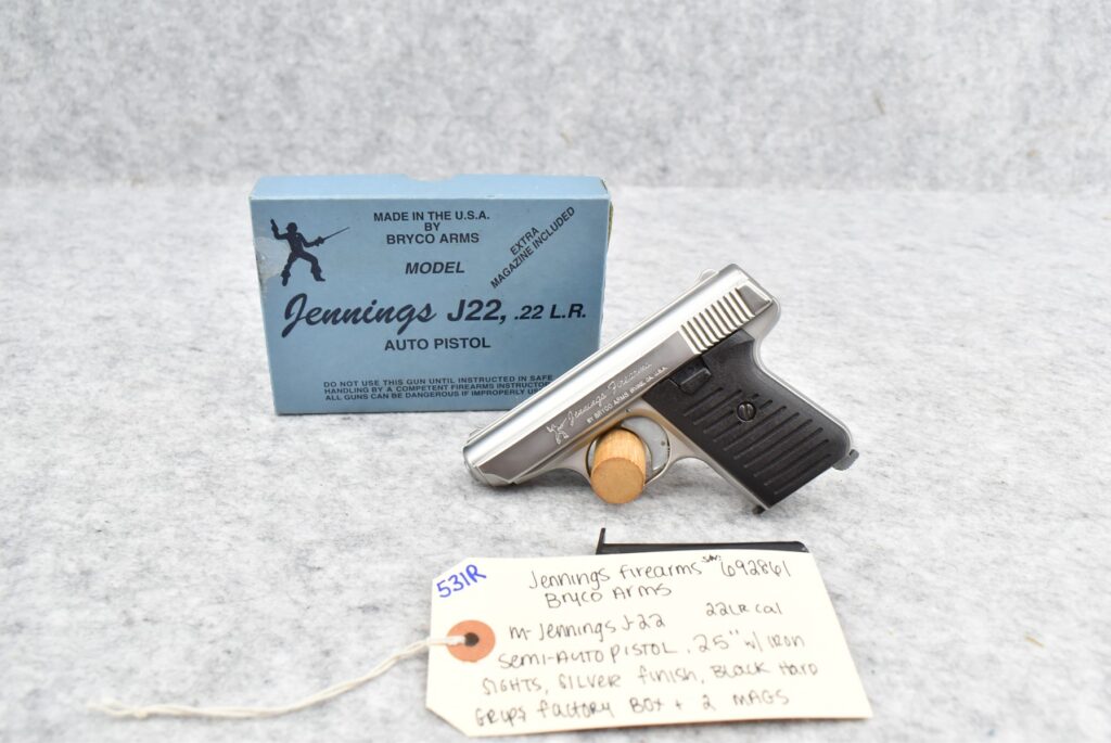 531R. Jennings Firearms/Bryco Arms – Mod. Jennings J-22 – 22LR Cal. Semi-Auto Pistol – w/2.5” Barrel w/Iron Sights – Chrome...