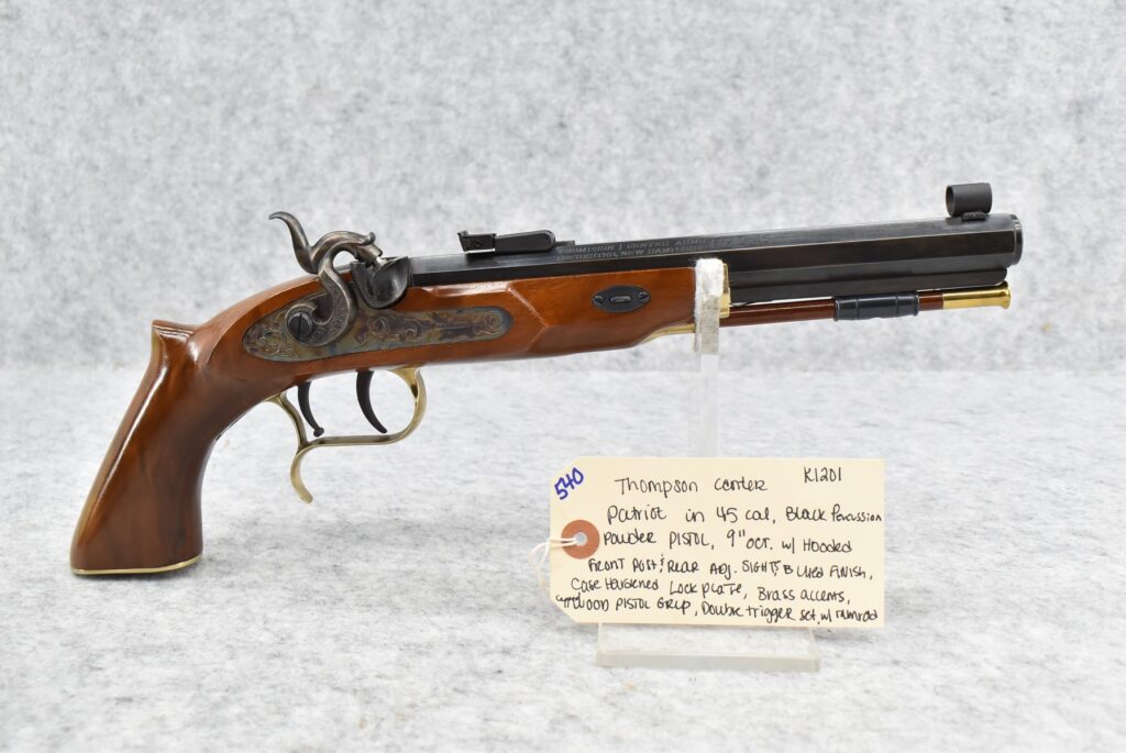 540. Thompson Center – Mod. Patriot – 45 Cal. Percussion Black Powder Pistol – w/9” Octagon Barrel w/Hooded Front Post...