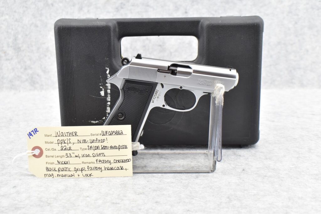 197R.     Walther – Mod. PPK/S – 22LR Cal. Semi-Auto Pistol – w/3.3” Barrel w/Iron Sights – Nickel Finish – w/Factory...