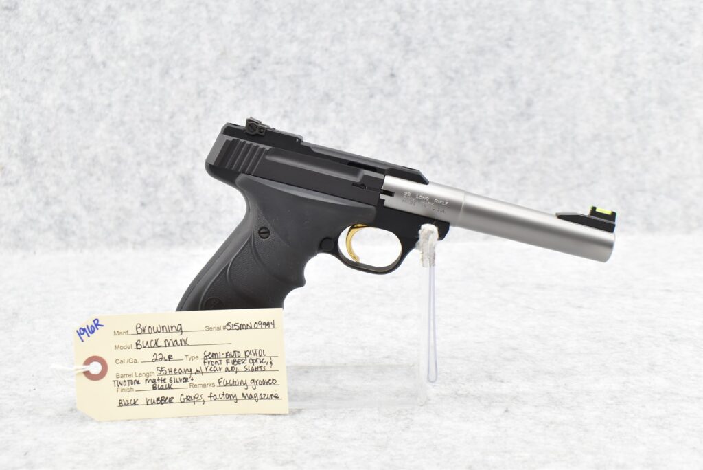 196R.     Browning – Mod. Buckmark – 22LR Cal. Semi-Auto Pistol – w/5.5” Heavy Barrel w/Front Fiber Optic & Rear Adj....