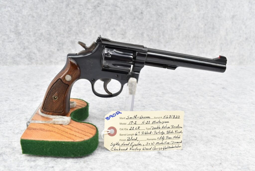 390R. Smith & Wesson – Mod. 17-2 K-22 Masterpiece – 22LR Cal. Double Action Revolver – w/6” Barrel w/Partridge Blade...