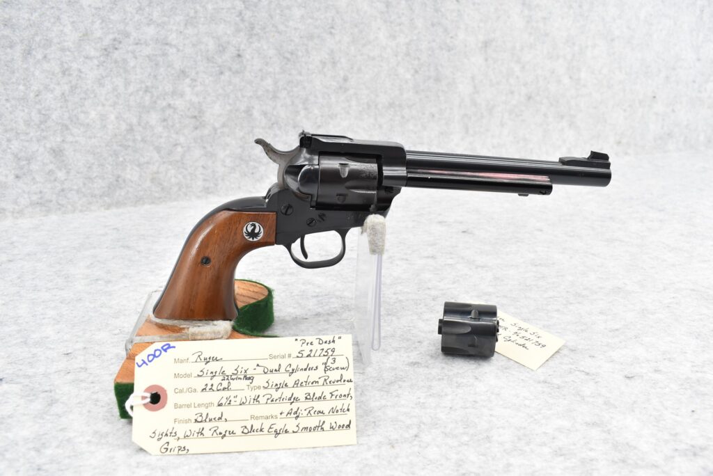400R. Ruger – Mod. Single Six (3-Screw) – 22/22 Win. Mag. Cal. Dual Cylinder Combo Single Action Revolver – w/6...