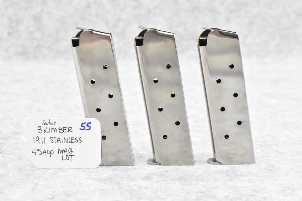 55. Factory 3 Kimber 1911 Stainless 45 ACP Mag Lot