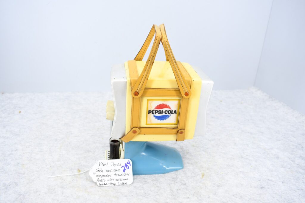 284. 1964 Pepsi Soda Machine Dispenser Transistor Radio – Radio has its Original Leather Strap – Very Unusual Find