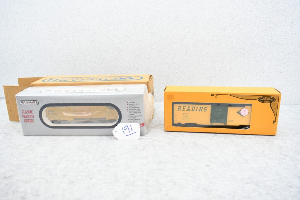 191.     Pair of O gauge train cars including Lionel Limited Edition series 6-9440 Reading boxcar and Williams Classic freight series...