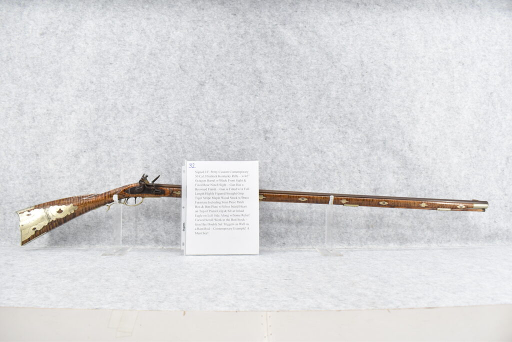 32.          Signed J.F. Perry Custom Contemporary 50 Cal. Flintlock Kentucky Rifle – w/42” Octagon Barrel w/Blade Front Sight & Fixed...