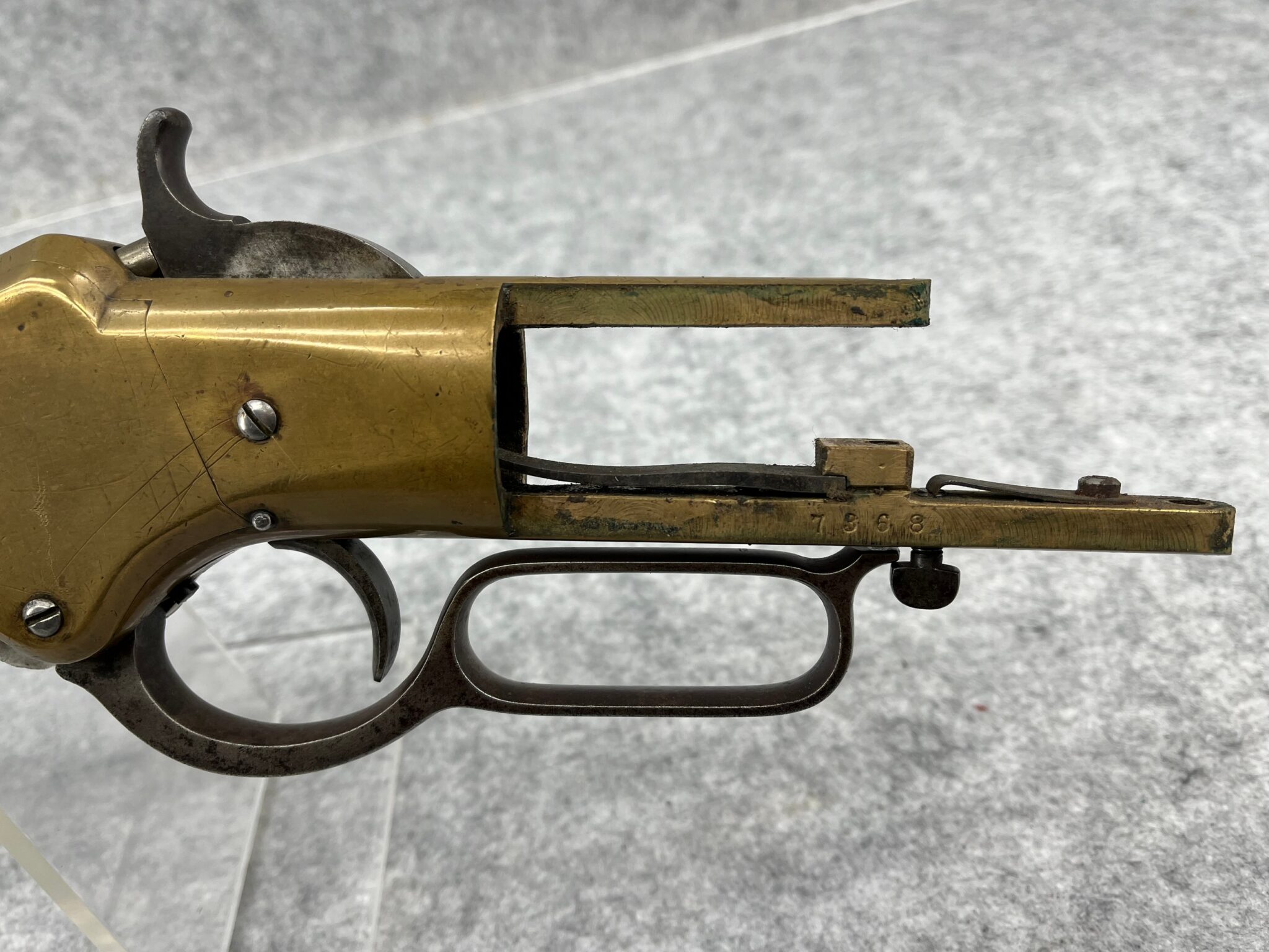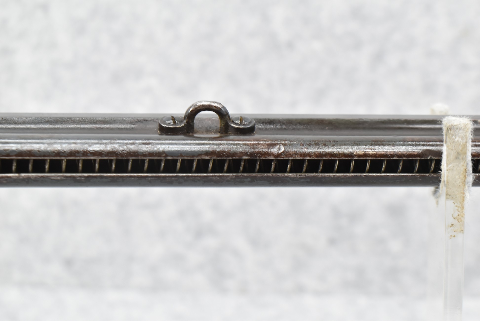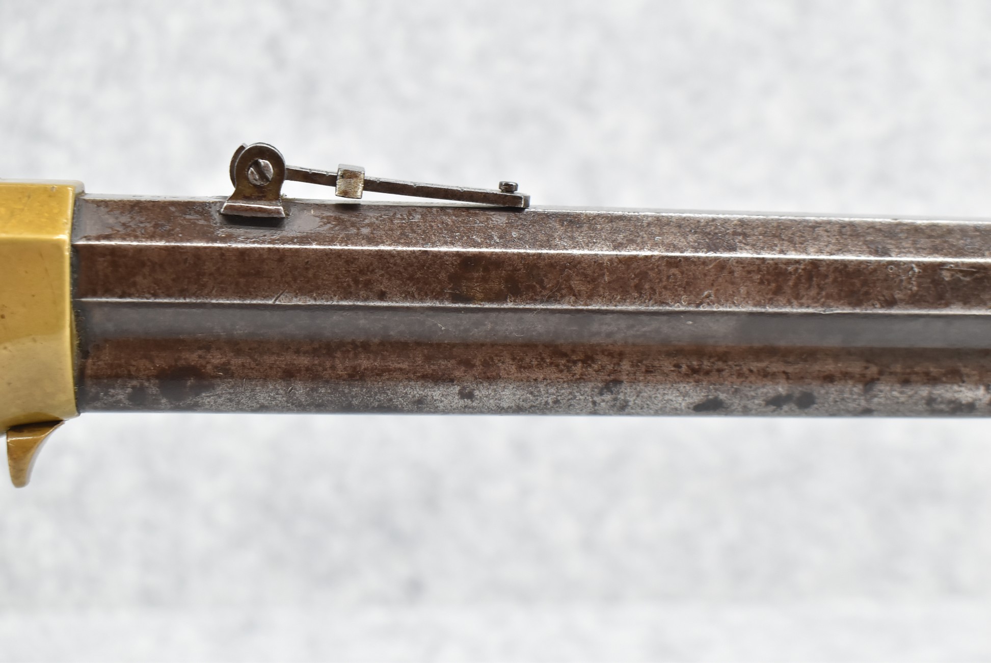 100. Original Henry Rifle – Serial #7368, This Henry by the Serial # Falls into a Group of Known Henry Rifles Issued to 3rd Regiment, U.S. Vet. Vol. -1865 Companies B, C, I, H, K According to the Book “The Historic Henry Rifle” by Wiley Sword. This Serial # Falls Right Between Known 3rd Regiment Henry’s #7365 & #7374 – This Henry Has a 24” Barrel w/Correct Front & 900 Yard Rear Adj. Ladder Sights & Sling Swivel Stud w/Internal Sliding Mag – w/Strong Barrel Marking & Serial # Stampings – w/Nicely Aged Brass Frame & Appears to Have the Original Varnish on the Straight Grip Butt Stock w/Sling Swivel – Has All Matching #s to Butt Plate to Butt Stock to Lower Tang to Barrel Serial #s (See Photographs) – Overall a Very Tight Honest Henry Rifle
