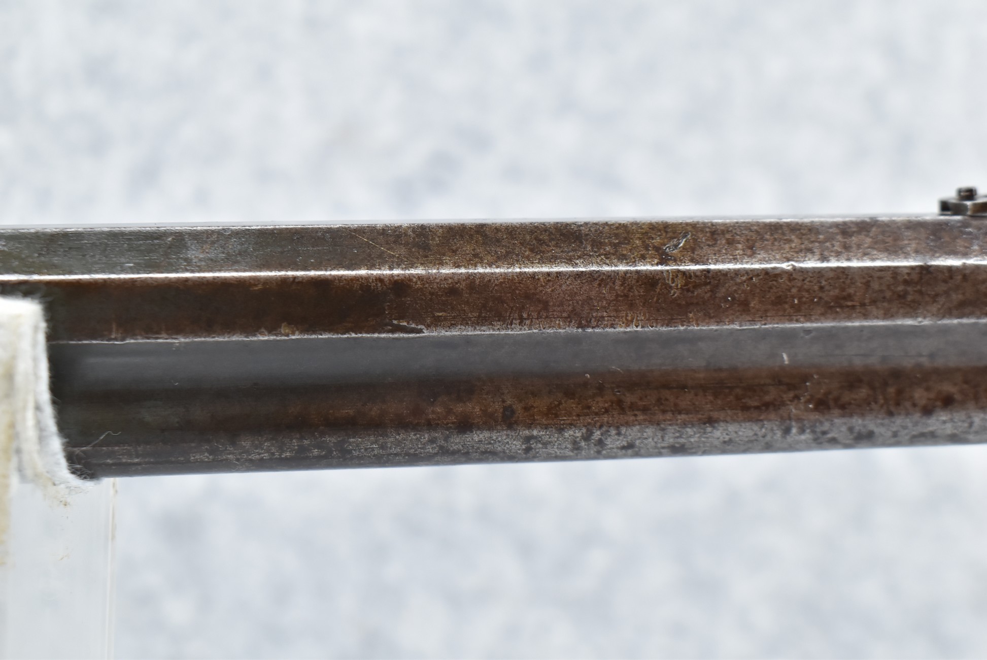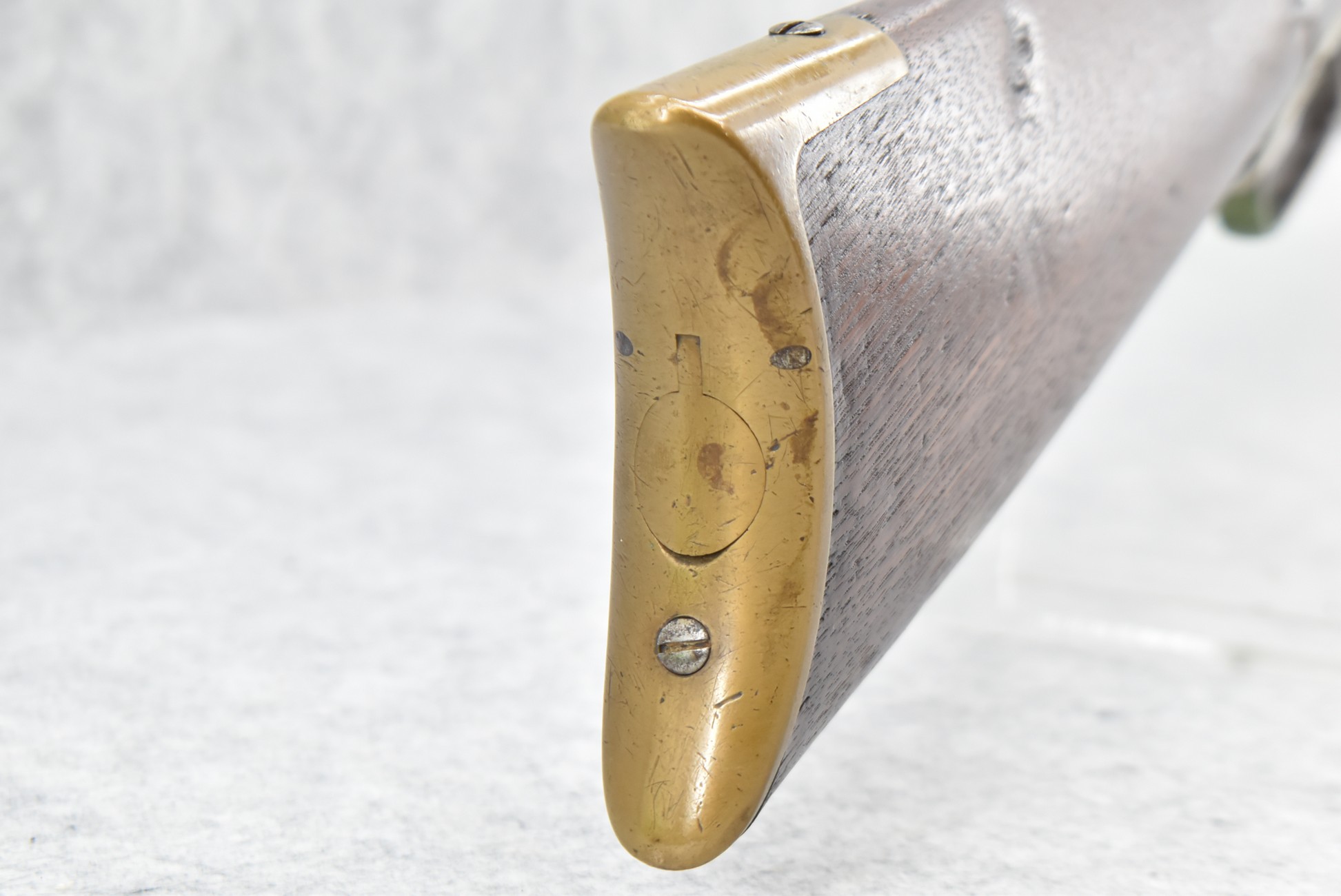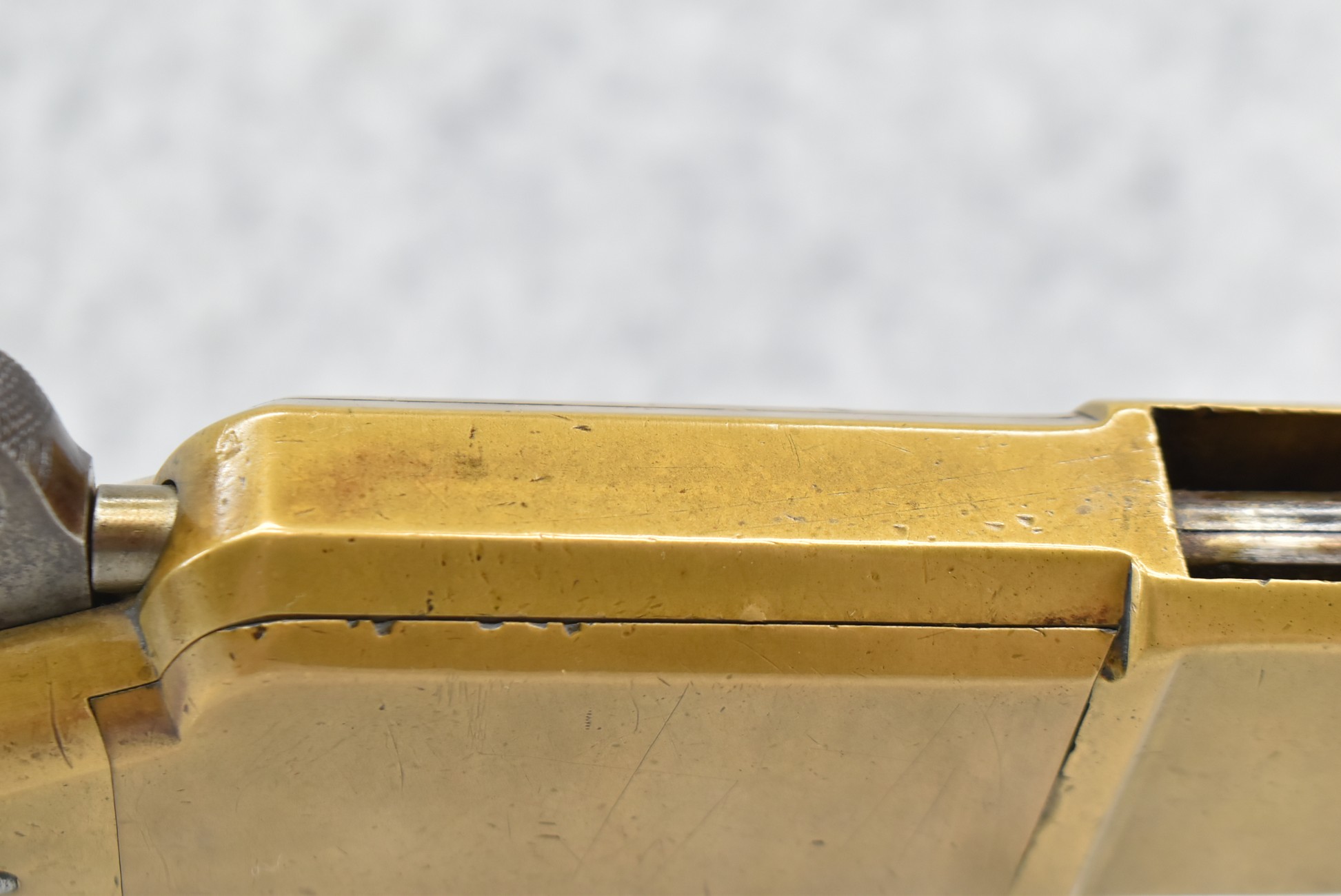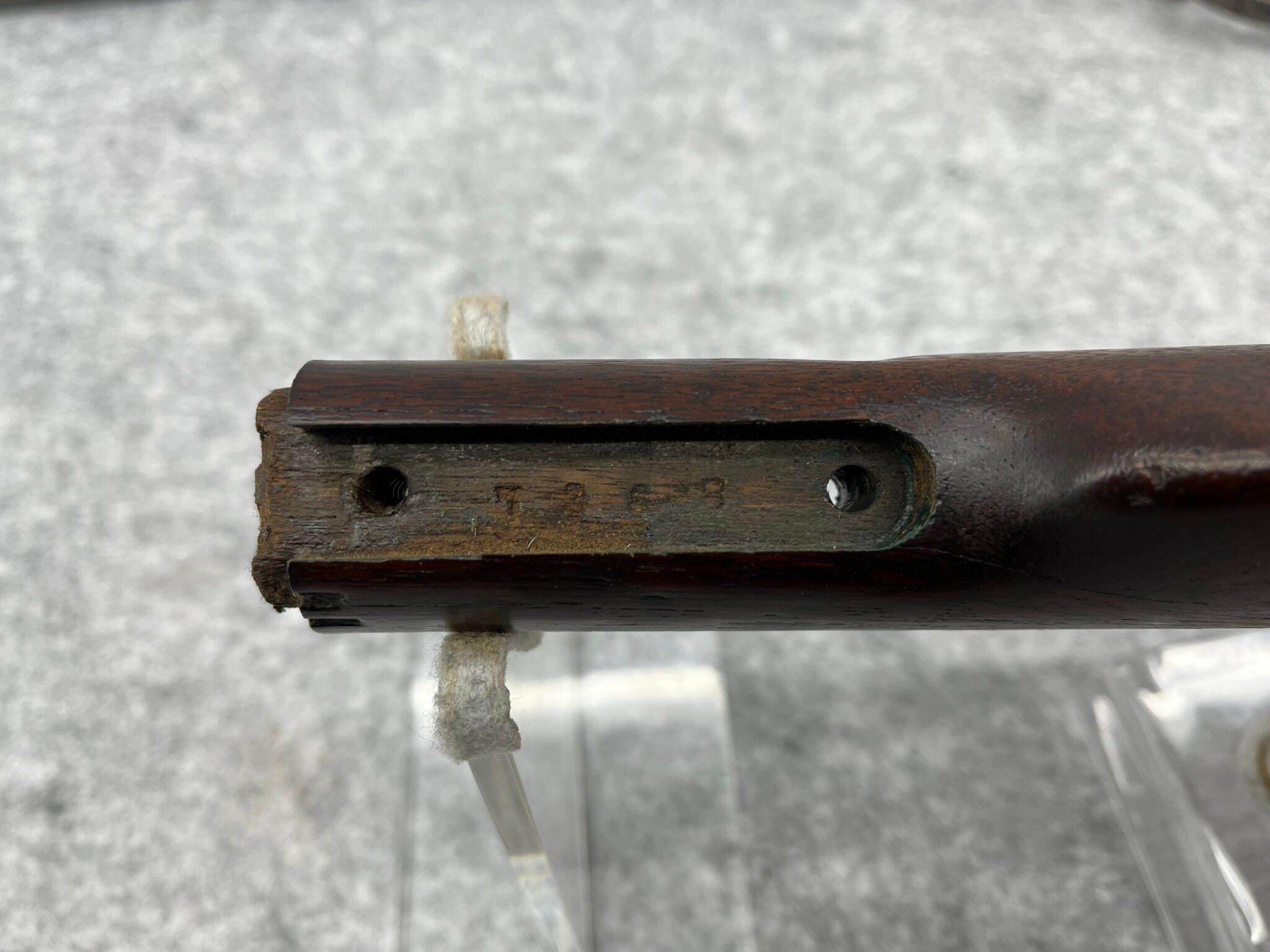 100. Original Henry Rifle – Serial #7368, This Henry by the Serial # Falls into a Group of Known Henry Rifles Issued to 3rd Regiment, U.S. Vet. Vol. -1865 Companies B, C, I, H, K According to the Book “The Historic Henry Rifle” by Wiley Sword. This Serial # Falls Right Between Known 3rd Regiment Henry’s #7365 & #7374 – This Henry Has a 24” Barrel w/Correct Front & 900 Yard Rear Adj. Ladder Sights & Sling Swivel Stud w/Internal Sliding Mag – w/Strong Barrel Marking & Serial # Stampings – w/Nicely Aged Brass Frame & Appears to Have the Original Varnish on the Straight Grip Butt Stock w/Sling Swivel – Has All Matching #s to Butt Plate to Butt Stock to Lower Tang to Barrel Serial #s (See Photographs) – Overall a Very Tight Honest Henry Rifle