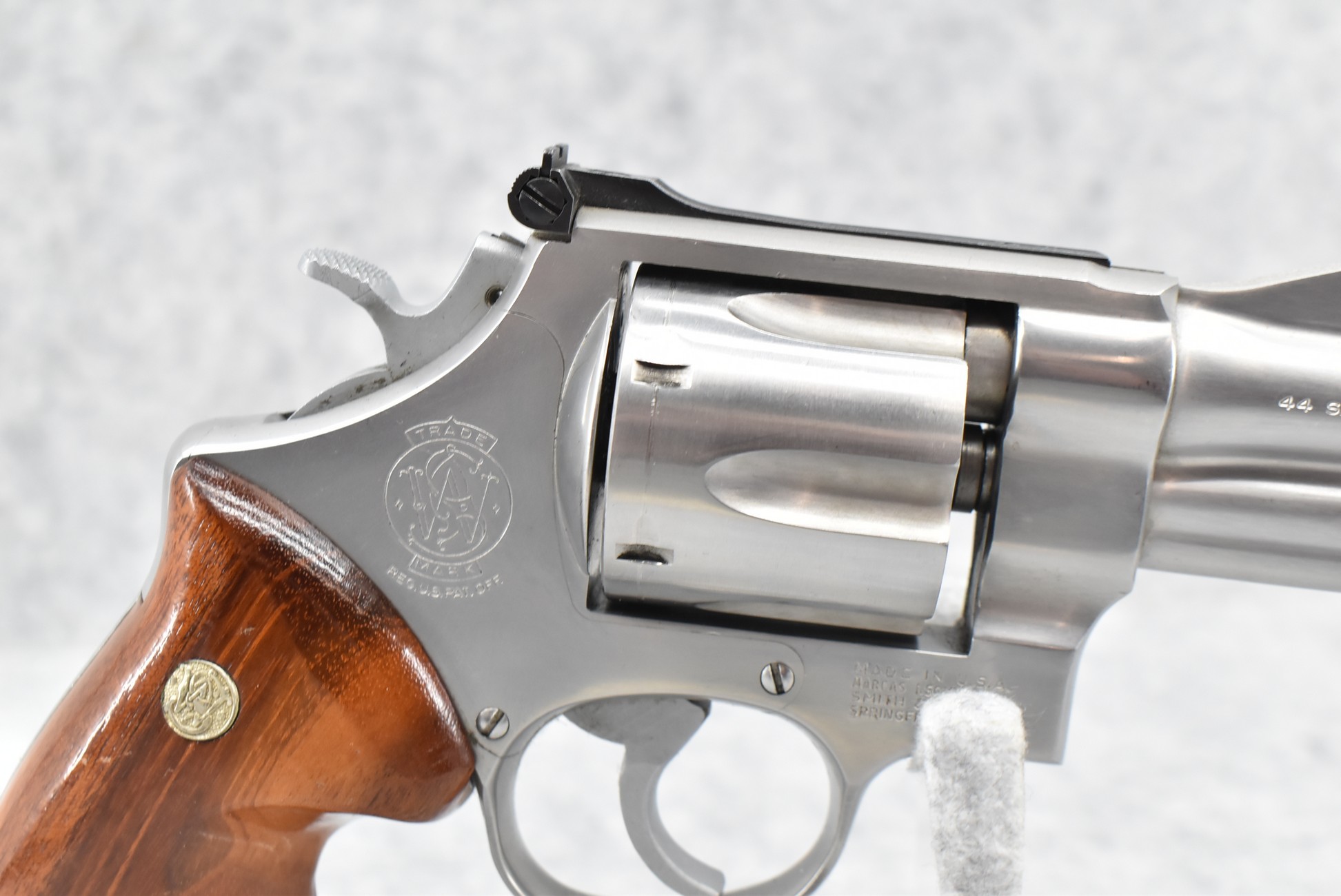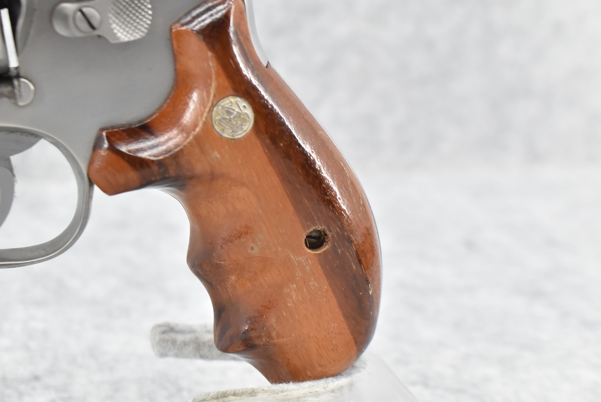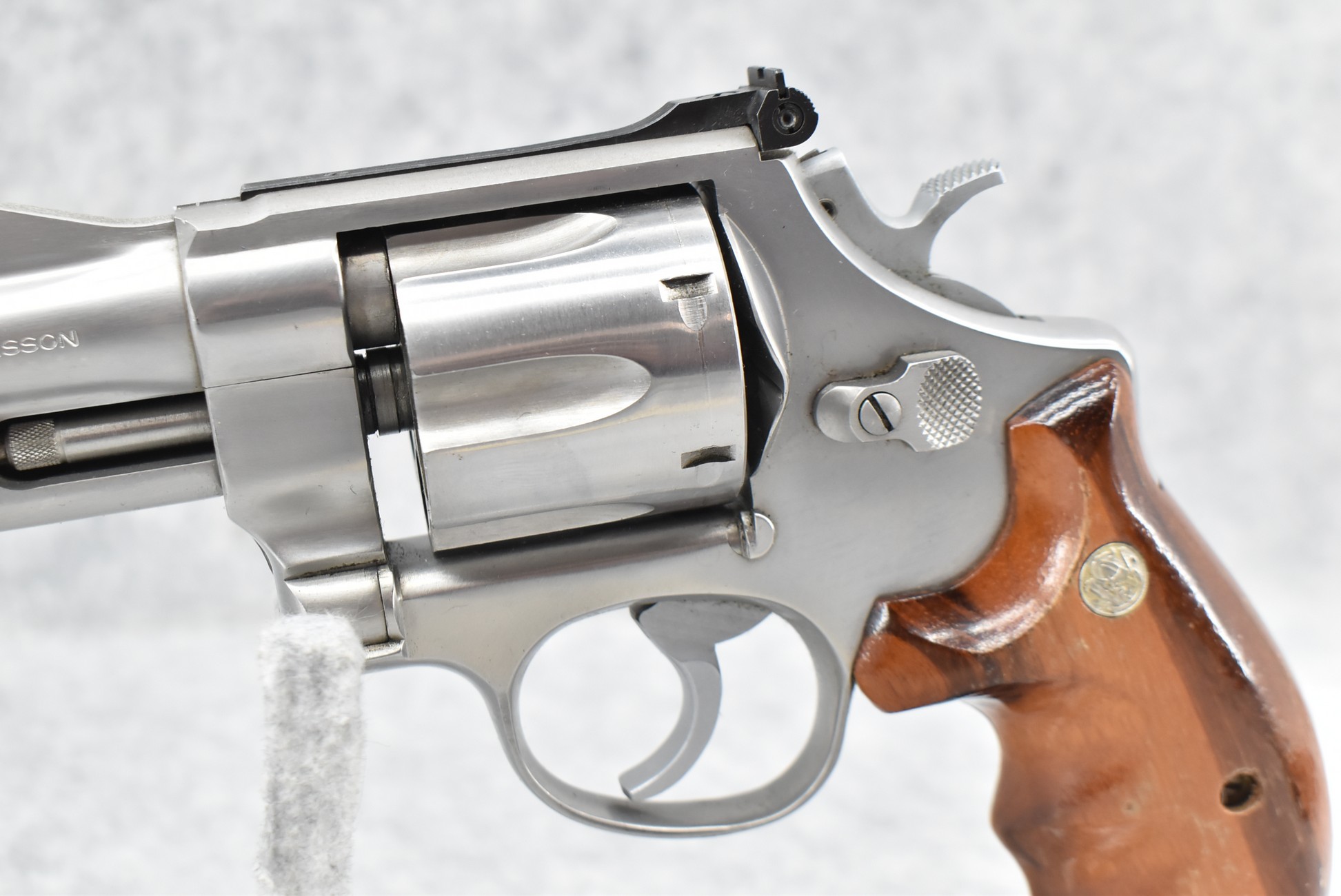 100R. Smith & Wesson – Mod. 624 Lew Horton Combat Special – 44 Spl. Cal. Double Action Revolver – w/3” Barrel w/Red Blade Front and Adjustable Rear Sights – Stainless Finish – w/Factory Grooved Wood Grip w/Smith & Wesson Medallion – 1,000 Manufactured – Product Code 103580 – w/Factory Box and Manual