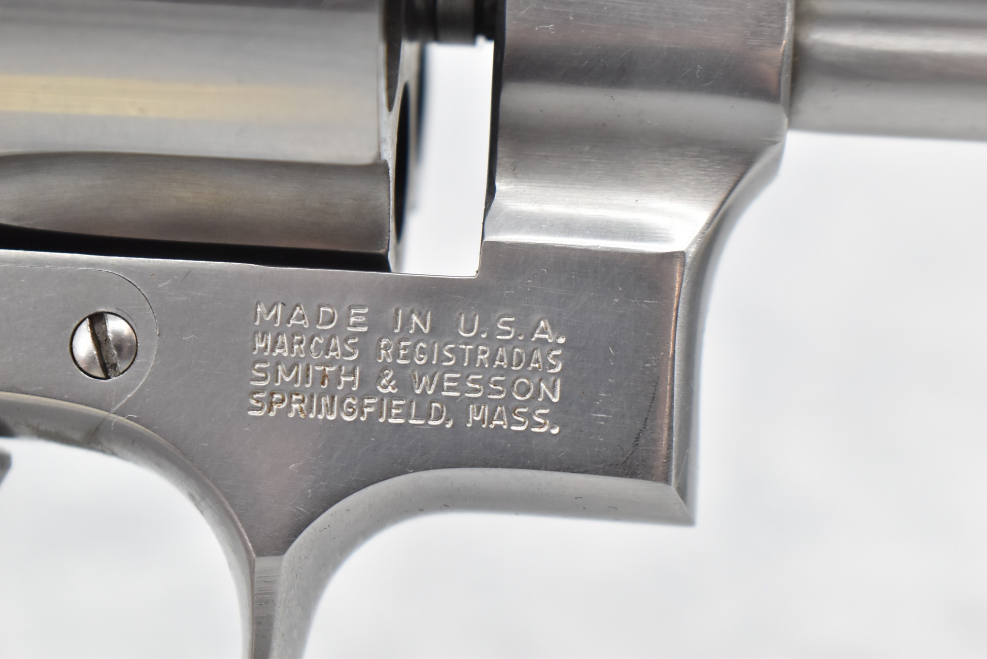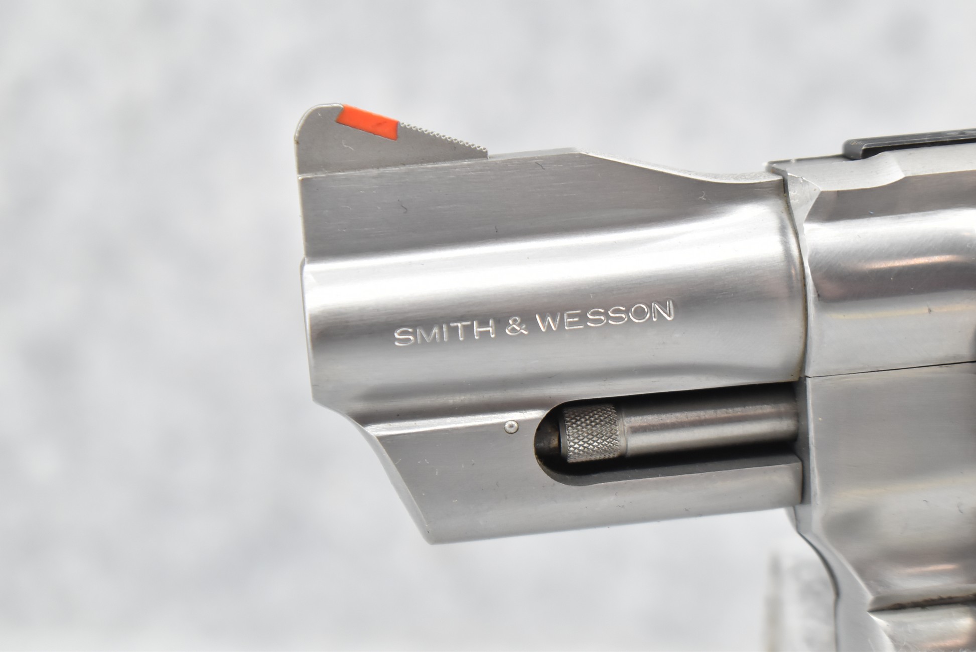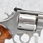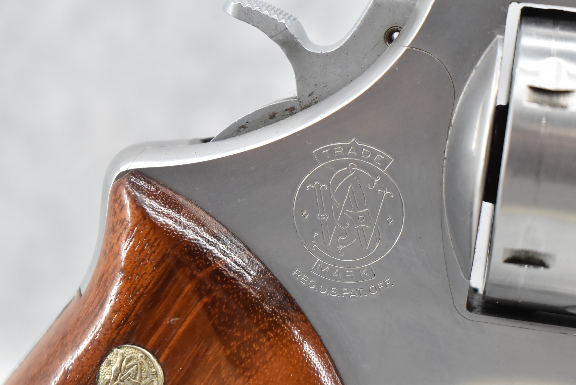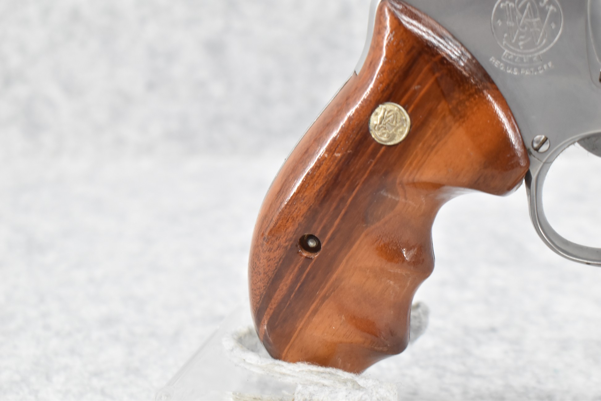 100R. Smith & Wesson – Mod. 624 Lew Horton Combat Special – 44 Spl. Cal. Double Action Revolver – w/3” Barrel w/Red Blade Front and Adjustable Rear Sights – Stainless Finish – w/Factory Grooved Wood Grip w/Smith & Wesson Medallion – 1,000 Manufactured – Product Code 103580 – w/Factory Box and Manual
