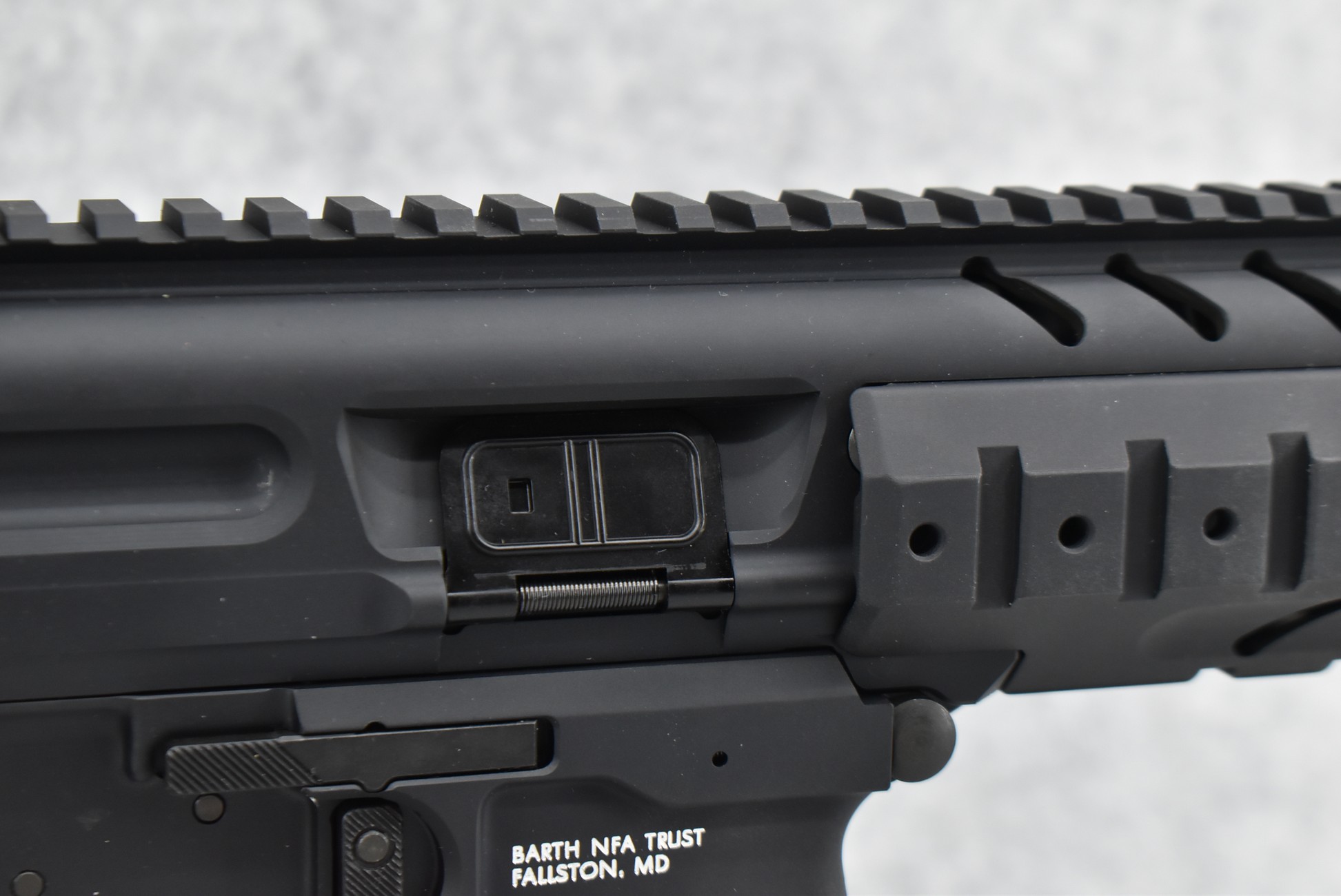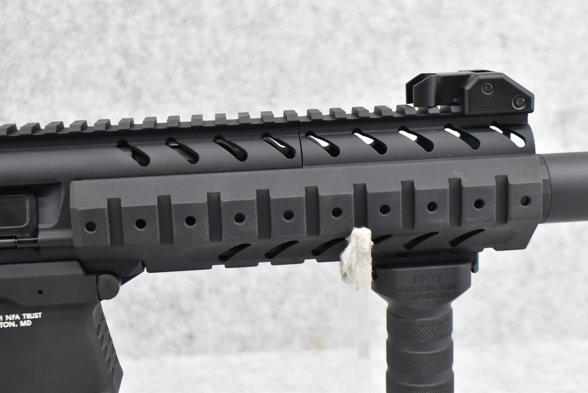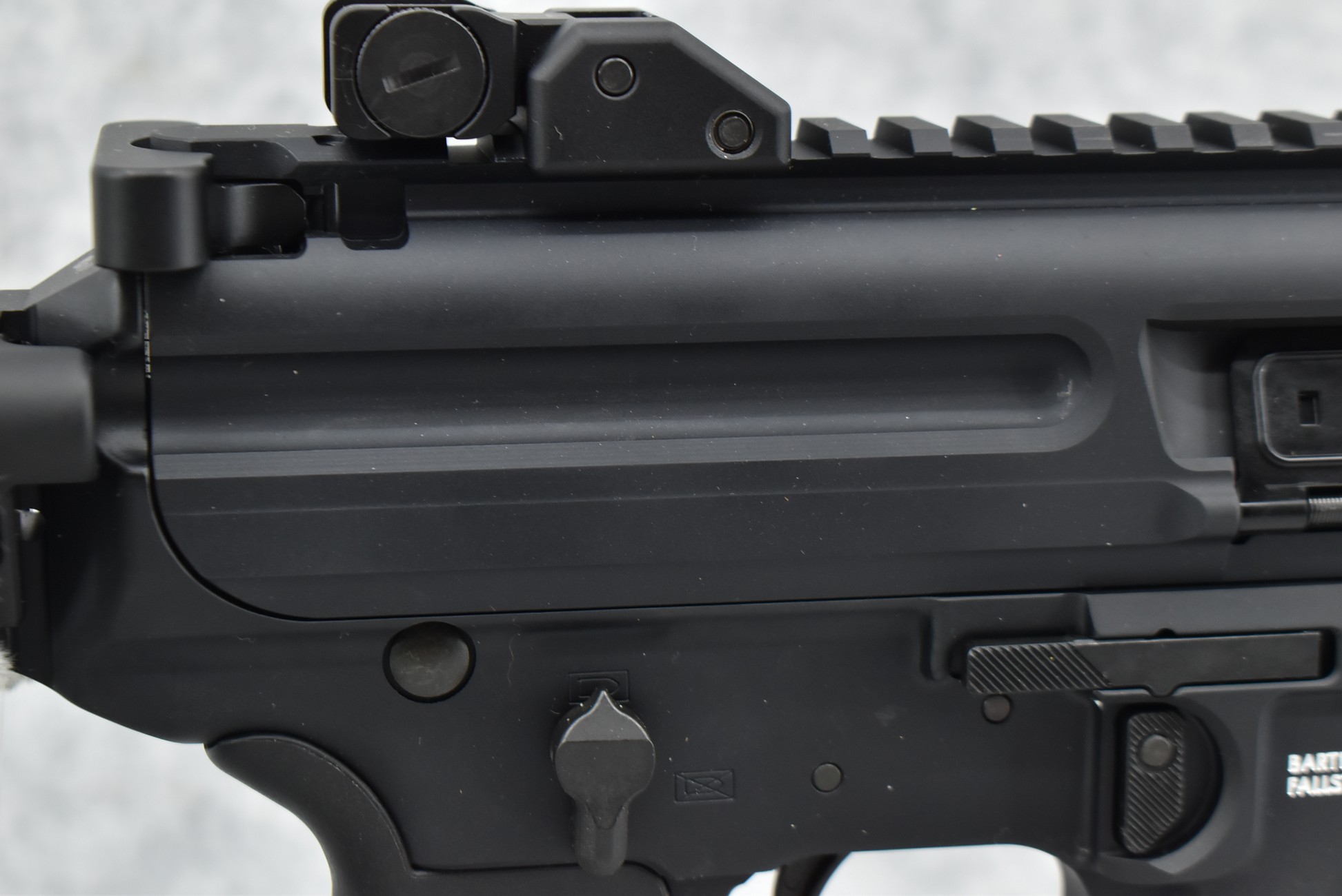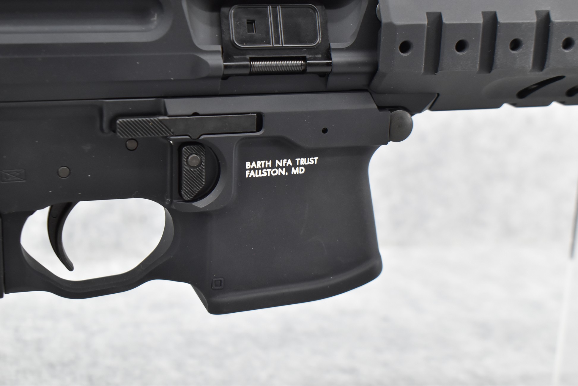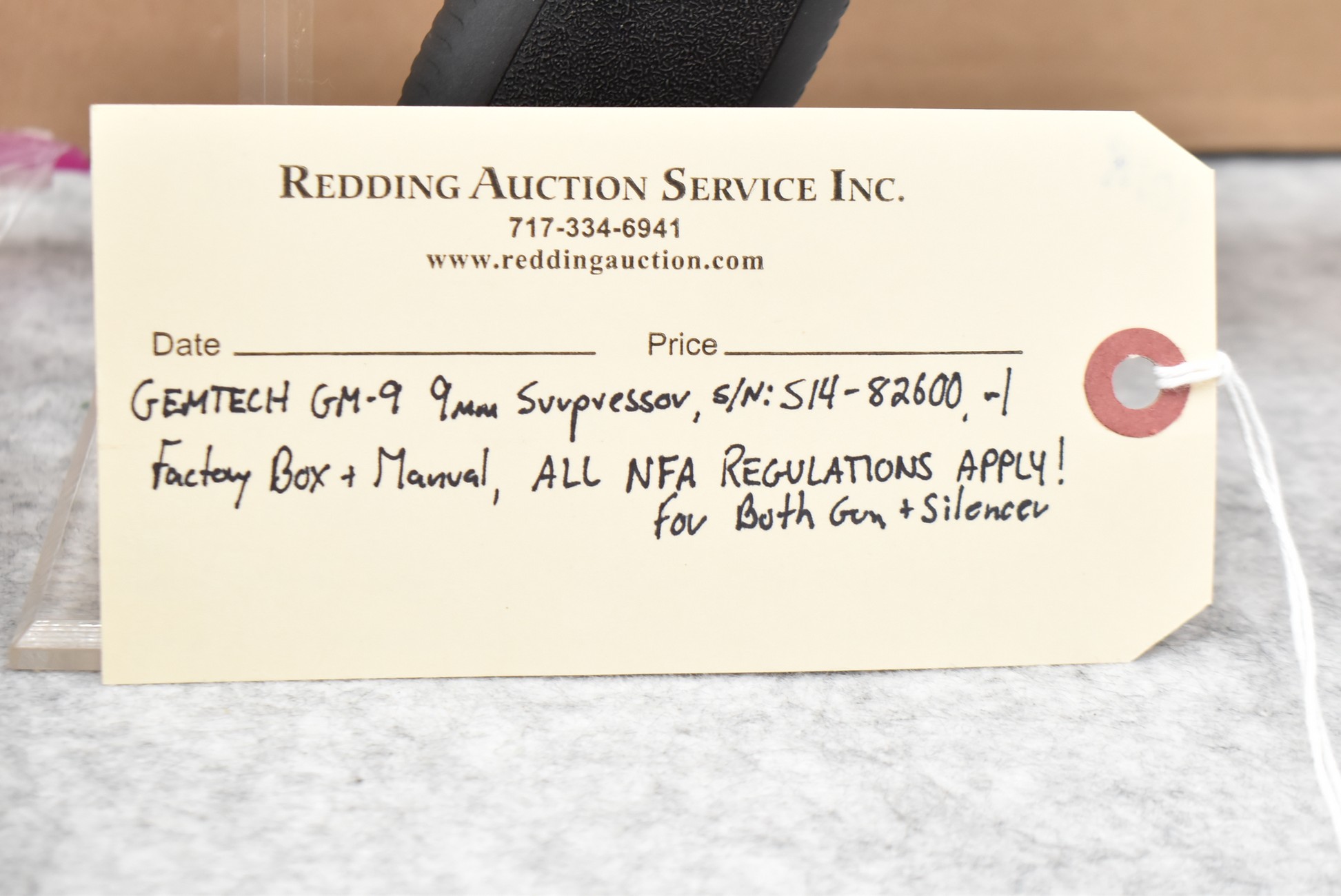 101R. Sig Sauer – Mod. MPX – 9mm Cal. Semi-Auto Short Barreled Rifle (SBR) – w/8” Barrel w/Flip-Up Post Front & Adj. Rear Sights – Matte Black Finish – w/Adj. Position Metal Butt Stock, Textured Synthetic Pistol Grip, Metal Vented Forearm & Fore Grip Pistol Grip – w/6 Total Factory Magazines – w/Flat Top Picatinny Rail – Gun is Also Equipped with a GEMTECH GM-9 Suppressor – w/Gun Factory Box & Manual – Gun and Silencer are both on Separate RAS Inc. NFA Book E-File Form 3 & Form 4 – Both Fully Transferable & Selling Together Please Check Your State & Local Laws For Legality Before Attempting to Purchase This Firearm!